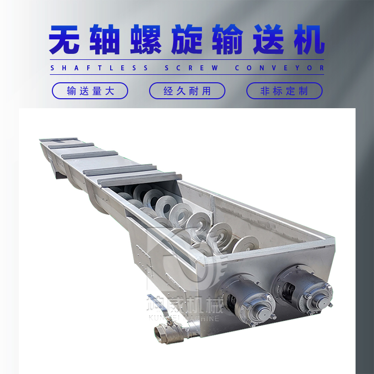 8、無軸螺旋輸送機扭矩大,能耗低。因為螺桿中沒有軸,物料不易阻塞,出料口不阻塞,能夠低速運行,驅動平穩(wěn),降低能耗。扭矩可達4000N.m。